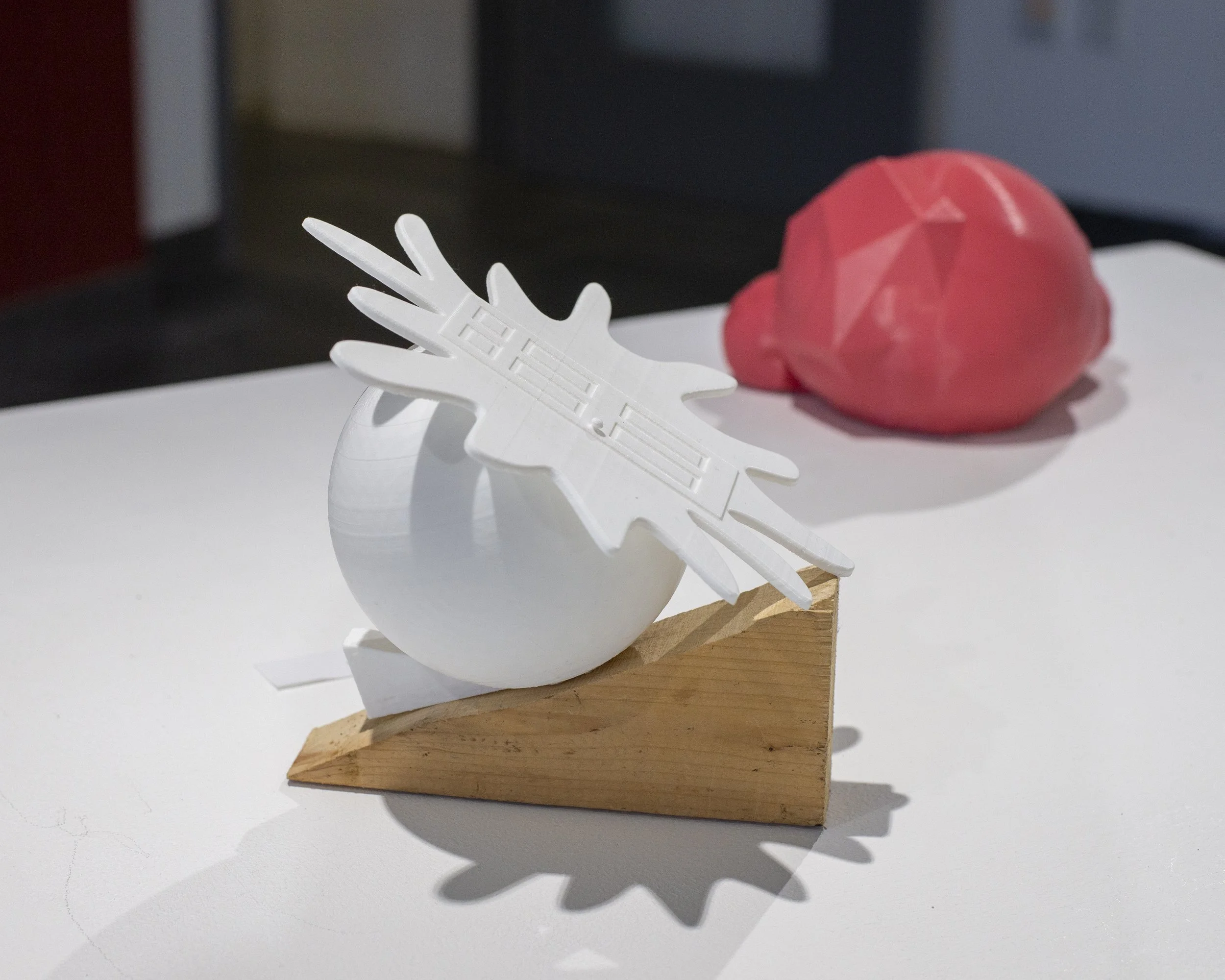 Foam core, acrylic paint, spackle, clay, balsa wood